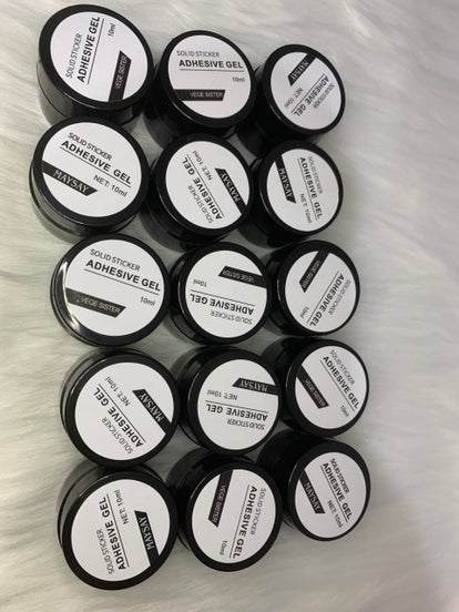 ( adhesive nail glue, alcohol pad, buffer/nail file, reusable nail stick- cuticle pusher.